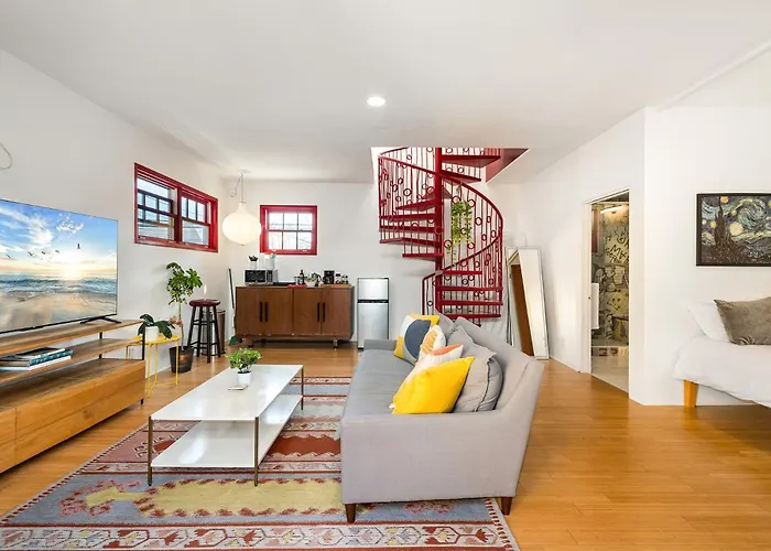Artistic Venice Beach Studio W/Rooftop is located at a distance of 3 km from Museum of Flying and about a 10-minute drive from Santa Monica State Beach. Guests can use Wi-Fi for either business or leisure reasons.